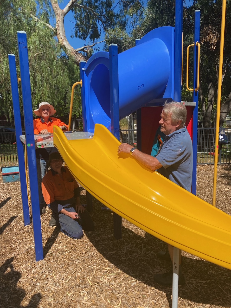 Rotary West Beach has joined with the Rotary Clubs of Mount Barker, Murray Bridge and Mobilong to source, dismantle (in preparation for reassembly) and transport this playground equipment to Rotary’s Donations in Kind establishment in Edinburgh South Australia.
